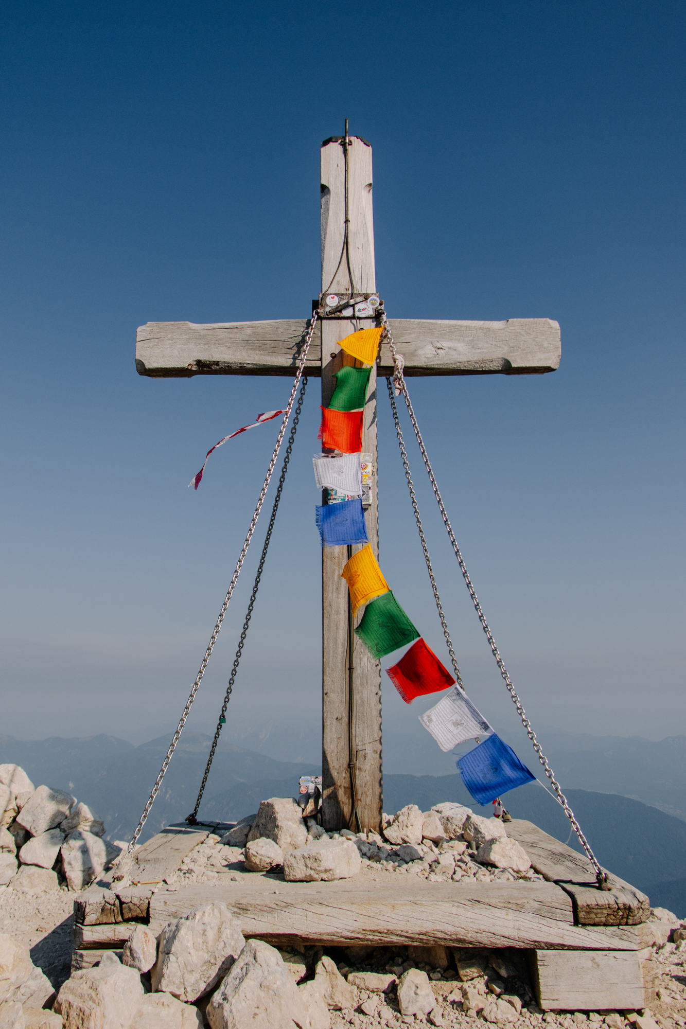 Oben angekommen, eröffneten sich uns wunderschöne Rundumblicke, die Bergketten schienen zum Greifen nah. Gerade in solchen Momenten schätzte ich die Vielseitigkeit des 16–300mm. Während der Weitwinkel am Klettersteig sehr praktisch war, konnte ich nun dank der längeren Brennweiten mich austoben und viele verschiedene Perspektiven einfangen.