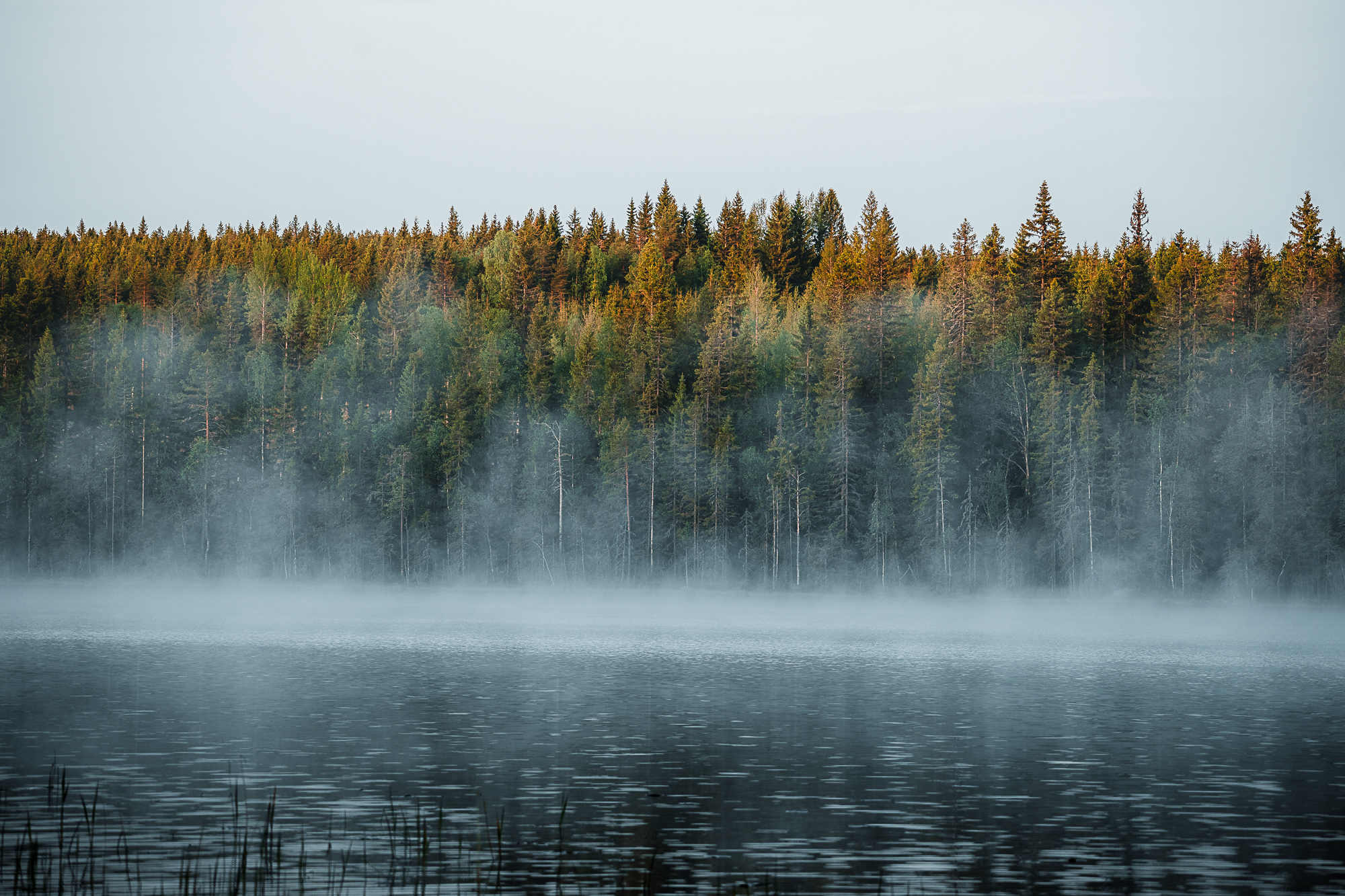 Schweden ist bekannt für seine endlosen Wälder und zahllosen Seen und diese wollten wir selbstverständlich fotografieren, in möglichst unterschiedlichen Szenarien. So hatten wir das Glück, dass wir Seen in perfekt weichem Licht zum Sonnenuntergang vorfanden und Seen, die in Nebel gehüllt waren. Nebel über dem Wasser wird auch Seerauch genannt und entsteht insbesondere, wenn da Wasser wärmer ist als die Luft und so Nebelschwaden aufsteigen. Die Chance ist hierfür am frühen Morgen am größten, wenn die Luft von der Nacht abgekühlt ist.
