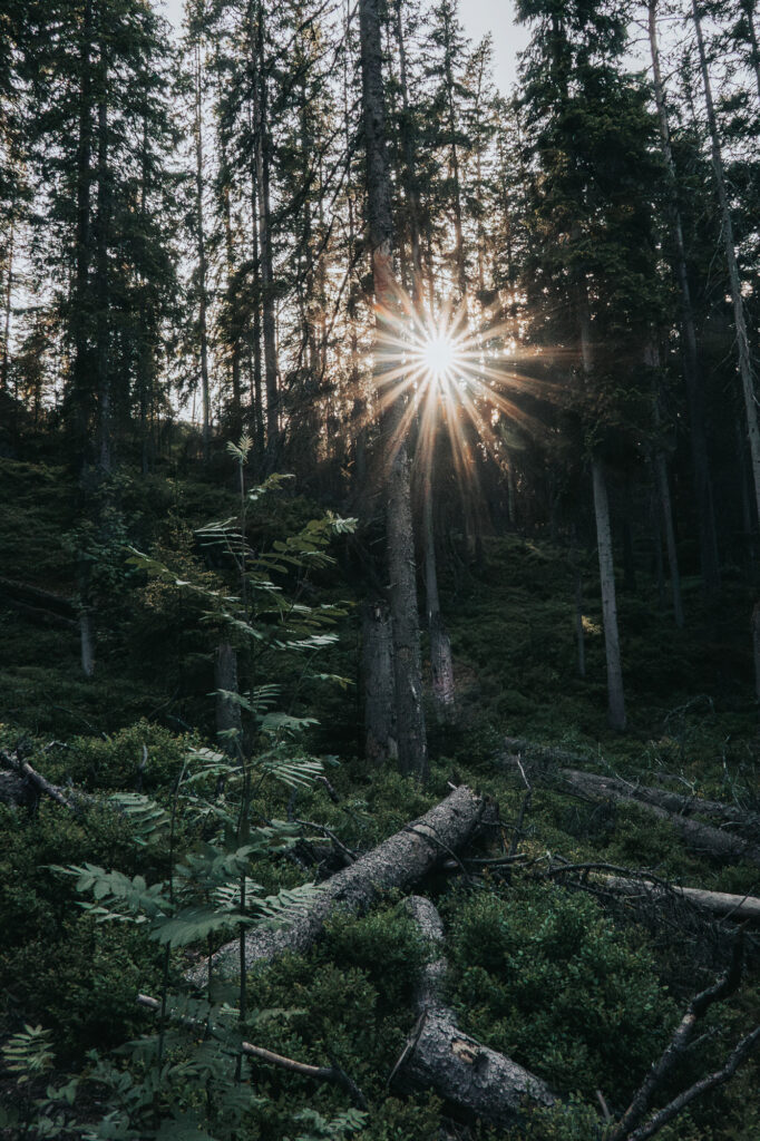 Wir lieben es in die Sonne hineinzufotografieren, bzw. diese Leicht am Bildrand zu haben. Das zaubert ein weiches, warmes Licht ins Bild. Dabei haben wir die Möglichkeit die Blende sehr weit aufzumachen, oder die Blende weiter zu schließen. Die Bildwirkung ist jeweils sehr unterschiedlich. Wenn die Blende weit offen ist, wirkt das Licht sehr weich hat einen schönen Schein. Wenn wir die Blende weit schließen, haben wir die Möglichkeit einen Sonnenstern (auch Blendenstern) zu erzeugen. Hierdurch werden Strahlen von der Lichtquelle aus sichtbar. Das Aussehen und die Anzahl der Strahlen resultieren aus der Bauweise des Objektivs. In den meisten Fällen bevorzugen wir das weiche Licht mit offener Blende, aber es gibt auch Situationen, wo wir einen Sonnenstern passender für die Szenerie finden. Die Sonne im Rücken haben wir selten, jedoch kann es sehr schön sein, insbesondere wenn in den Bergen am frühen Morgen oder späten Abend nur die Gipfel vom Sonnenlicht angestrahlt werden und der Rest der Berge im Schatten liegt.