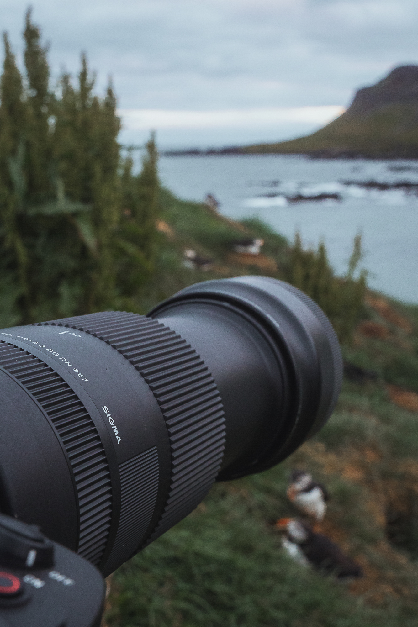 Das Sigma 100-400mm war für diesen Ort eine ideale Wahl, da der Zoombereich uns die Möglichkeit gab, sowohl Papageitaucher, die weiter weg sind aufzunehmen, als auch solche einzufangen, die relativ nah dran sind, und somit wundervolle Nahaufnahmen zu erhalten.