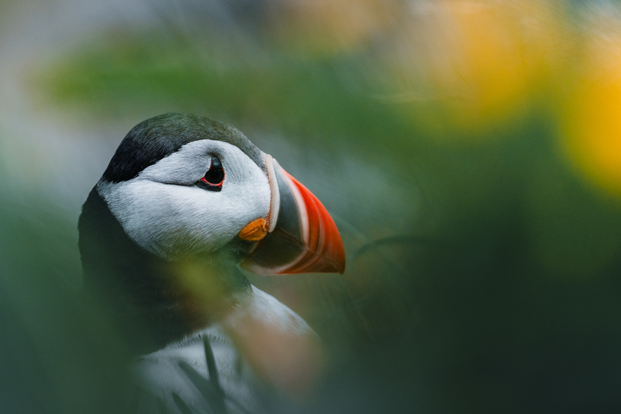 Ist die Linse nah genug an dem Grasbüschel oder der Blume dran und die Distanz zum Puffin gegeben, erhält man damit ein schönes Bokeh im Vordergrund, wodurch der Blick des Betrachters direkt auf das Hauptmotiv gelenkt wird.